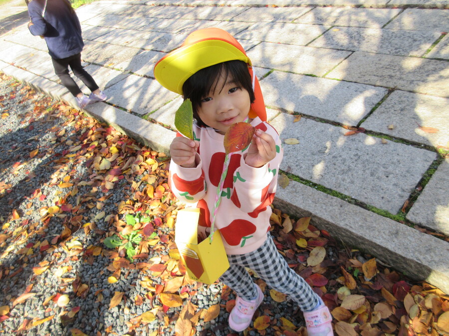 黄色い葉っぱ、赤い葉っぱいっぱいありました。