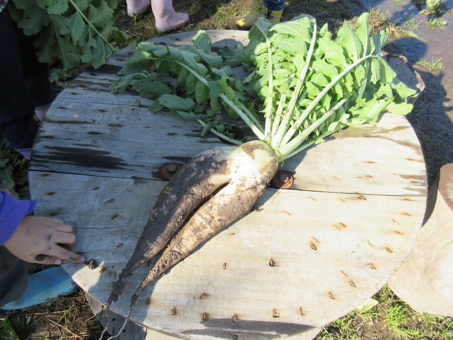 夏のスイカ畑が終り、地域の中川さんの指導で