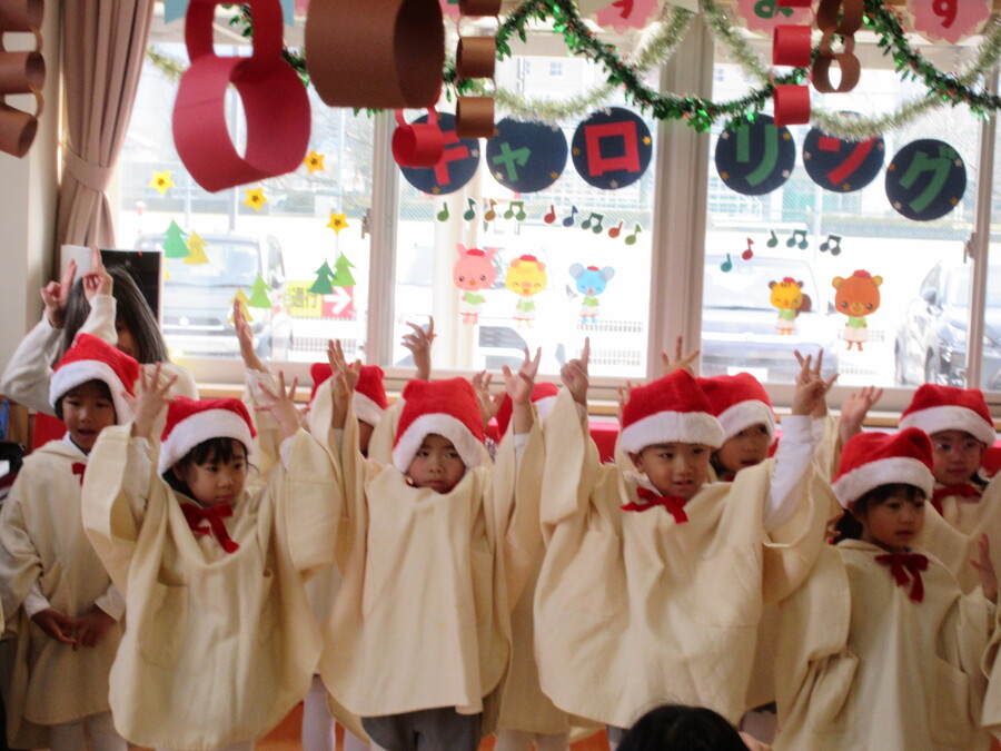 年中・年長組でクリスマスのキャロリングに