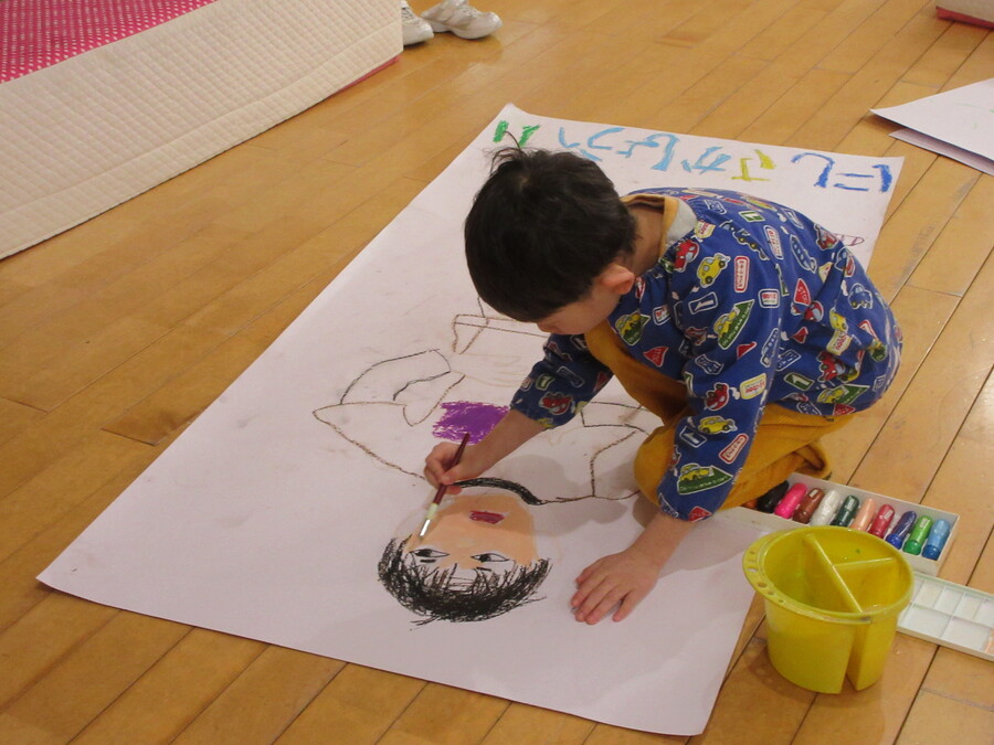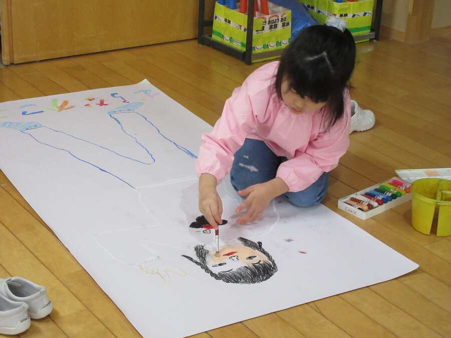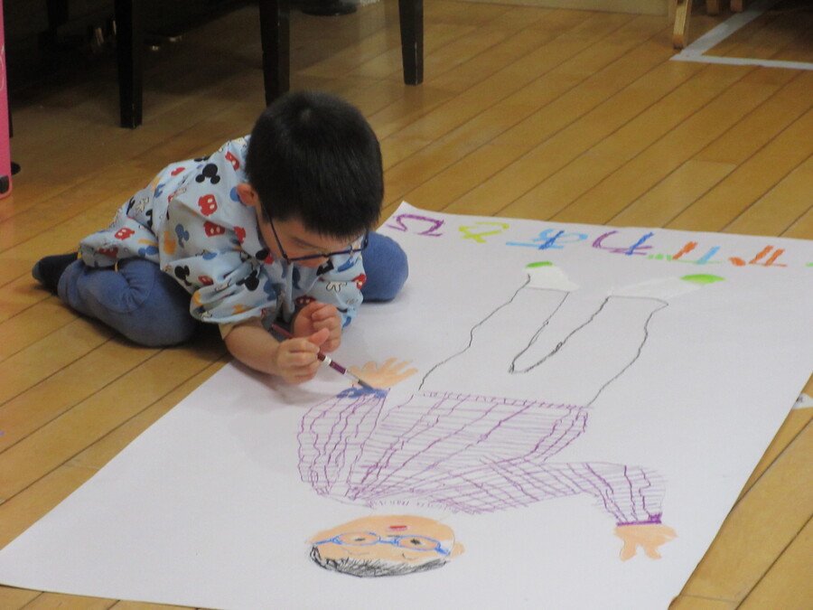 自分の姿と同じ大きさの絵を描きます。